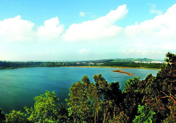 經聯合國地質勘探專家組鑒定,湖光巖是距今16至14萬年間經多次平地火山爆炸深陷而形成的瑪珥湖。湖面積2.3平方公里,湖深446米,其中火山泥沉積物400多米,水深20余米。湖和火山泥含有60多種微量元素,是世界罕見的“天然年鑒”和“自然博物館”。董必武同志曾用十個字對它作了概括:“四山環一湖,湖水明如鏡”。湖光巖的精粹是一汪蘭湛湛的、純凈得有如山泉的湖水。世界上僅有兩個瑪珥湖,湖光巖最早時稱"凈湖"或"鏡湖"。湖光巖的瑪珥湖比德國的瑪珥湖大,是世界上發現的最大瑪珥湖,且保存得非常自然,完整。湖中沒有螞蝗,沒有青蛙和蛇,卻有大量的魚蝦,甚至有巨大的神龜龍魚出沒。長年累月不管落葉塵埃如何侵染湖面,5個小時后湖水自有神奇的自我凈化功能,把雜物消得無影無蹤,湖水清澈,明凈如鏡,湖光巖其美麗的不解之謎一直是大自然中的謎團,吸引著中外科學家考察探研。2004年10月,世界上最為典型的兩個瑪珥湖----湖光巖瑪珥湖與德國艾菲爾地區瑪珥湖簽署了“中德姐妹瑪珥湖合作協議書”,結拜為“姐妹湖”。湖光巖大小共有50多處千姿百態,風景優美的景點,版權所有山東聊城聊之旅國際旅行社有限公司,轉載必究!被譽為“天然氧吧”。它也是國家劃水訓練基地,曾舉辦過2004年世界滑水錦標賽。