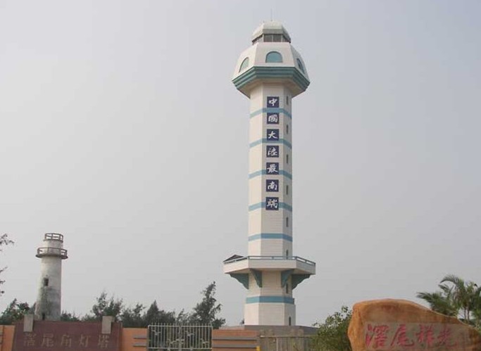 徐聞燈樓角位于湛江市徐聞縣西南海濱,三面環海,東為角尾灣,南與海南島澄邁縣相望,西臨東場灣,有一角狀沙灘前伸入海。燈樓角自北向南楔入瓊州海峽約3公里,扼北部灣與瓊州海峽進出口,是瓊州海峽航道的要沖,也是中國海岸的最南點。該角面積約3000平方米。這里有銀白的沙灘,玲瓏的貝殼,洋人留下的房屋、水井遺址,并有挺拔的綠椰,葳蕤的木麻黃,婆娑的路兜勒,悅目的閑花野草。