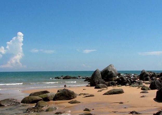 龍水嶺是航船進出湛江的咽喉之地,是天然的“綠標”,其地下有被遺棄的軍事工程,洞穿山腰,機關巧沒,詭不可記,現擬開發為多功能的娛樂場所——“地下龍宮”。龍水嶺海拔不高,相形于平均自然標高約20米的東海島有“登龍水嶺而小東海”之感。站立于山頂,東海島的自然風光盡收眼底,向西注目,田疇千里,翠綠點綴,云蒸霞蔚,面東遠眺,瀚海無涯,一碧萬頃,漁帆點點,片云天遠,近看,白浪層層,銀沙如練,側耳傾聽,林海颯颯,濤聲陣陣。龍海天一望無際的大海,連綿無盡的海岸線直映眼簾,腥咸的海風夾雜著陽光的氣息,撲臉而來,漂浮在清冽的海水中,任那層層白浪撲打,隨那陣陣濤聲經唱,你心中的什么煩惱都會飛到九霄云外。這里水清沙細,坡平且長,平時人跡罕至,在海灘上經常可以看到的是漁夫“拉大網”。若買些剛打上來的魚、蝦、螃蟹,三五知己在太陽傘下即烹即食,那才是神仙過的日子。