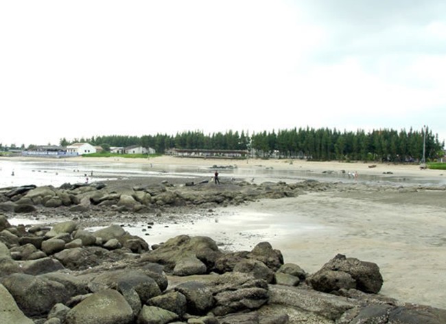 吉兆灣度假區距離湛江市區65公里,東連電白的虎頭山,西至炔花江口,全長20公里,石多、灣多而 別具一格。海灘水質純凈,沙質松軟潔凈,貝殼彩石遍布,細浪綿綿,海面一望無際,水清見底,深淺適 中。這里葵樹成行、椰影婆娑,極富亞熱帶海濱風光,堪與北戴河、芭堤雅媲美。到調德海邊觀賞“南天 吉石”,可領略海南三亞“南天一柱”的風采。