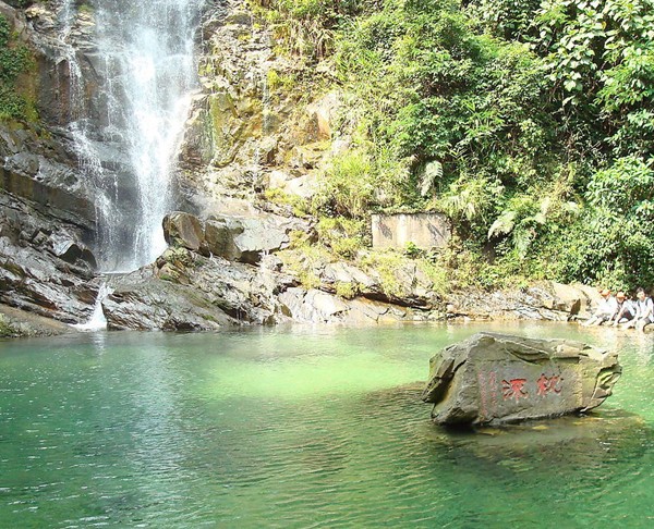 鼎湖山飛水潭,又名龍?zhí)讹w瀑,位于鼎湖山南半山腰、慶云古剎下東側(cè)。 去飛水潭,由榮睿碑亭拾級登山,沿曲徑云封直上,至半山腰向右拐,過眠綠亭即可。當(dāng)然,亦可在榮壑碑亭前面的山溪邊起步,一直溯溪而上。這里,山石嶙峋,瀑布從40多米高的崖頂深處狂奔而來,直往下飛瀉,忽而形成千尺飛流,如白練懸空,忽而濺作滿空雨花,如輕紗曼舞。瀑布下,如注的水流匯成一泓碧水,中有巨石,上刻“枕流”2字。辛亥革命后,孫中山先生偕夫人宋慶齡游覽鼎湖山時,曾在此游泳,現(xiàn)崖壁上刻有宋慶齡手書的“孫中山游泳處”6個大字。潭水由此再往下傾瀉,版權(quán)所有山東聊城聊之旅國際旅行社有限公司,轉(zhuǎn)載必究!繼而形成另一個深潭,據(jù)傳為蟄龍窟,故曰:浴龍池。飛水潭側(cè)建有更衣室,崖間建有觀瀑亭,崖壁鐫刻著許多贊美飛水潭的摩崖大字和方寸小楷,如“噴雪”、“能移我情”、“天然圖畫”、“飛泉咽危石”等,頗有詩情畫意。 夏日到此,觀瀑、游泳、濯足,均感遍體清涼,煩熱頓消。