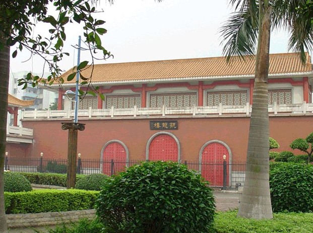 觀龍樓位于愛亨村東南面的牛頭山頂。民國24年(1935年)孫科任中山紀念中學校董會主席時,與廣東省農業廳商定建立孫中山故居農業所而興建的農業所辦公室。1984年翠亨賓館興建時,將牛頭山及這座樓房接管,辟為游覽點。這幢樓紅墻綠瓦,門前兩條石柱繞著兩條龍,栩栩如生。這里憑高遠望,可清楚望見唐家半島和淇澳島對峙的金星門(金星港),左、右兩個島成長條狀,形似臥龍,正中的金星島,嬌小玲現,宛若一顆小珍珠。