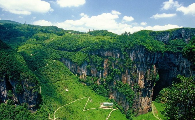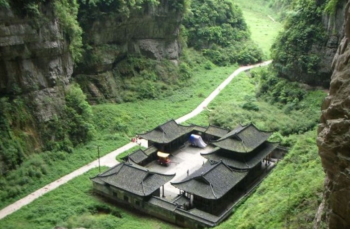 天坑三橋位于重慶市的武隆縣城東南20公里處,是重慶5A景點,武隆至仙女山高速水泥標美路旁,距南國草原仙女山約15公里,距天下第一洞芙蓉洞僅30公里,是全國罕見的地質奇觀生態型旅游區。景區內游覽路線從崖壁到谷底共5公里,以天龍橋、青龍橋、黑龍橋天生三座規模龐大,氣熱磅礴的石拱橋稱奇于世,三橋平均高200米以上,橋面寬約100米,在距離僅1.2公里的范圍內就有如此龐大的三座天生橋實屬國內罕見。
