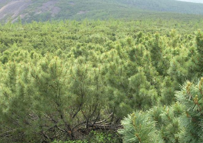 海拔1350米以上的頂部為匍匐生長的偃松矮曲林,還有樺屬植物和越桔,它們也都變成了高山型植物。