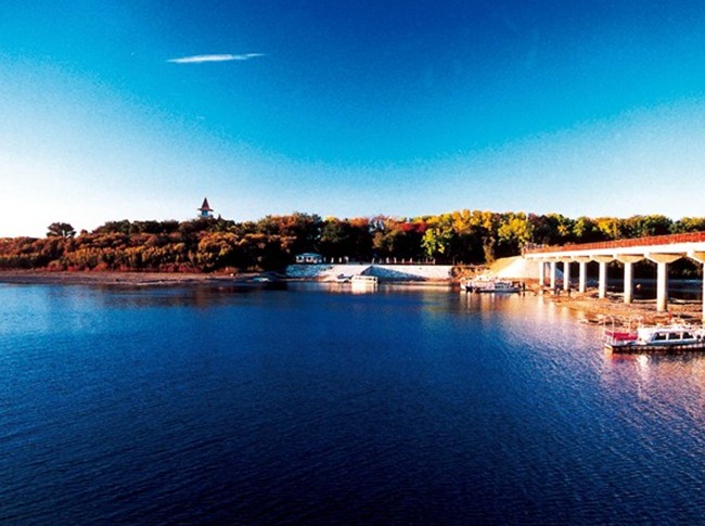 鶴崗名山島位于鶴崗的蘿北名山旅游區(qū)包括名山島和名山沿江公園。名山沿江公園總長(zhǎng)有2000多米,分九大景區(qū),45個(gè)景點(diǎn),人文氣息與自然景色兼?zhèn)洹:邶埥牡拿綅u距名山鎮(zhèn)1.7公里,是國(guó)家3A級(jí)旅游景區(qū)。它緊臨國(guó)界線(xiàn),處在大江之中,南側(cè)距名山鎮(zhèn)江岸200米,北面與俄羅斯的阿穆?tīng)柦萏亟断嗑?000米。江水環(huán)繞,古木森森,鳥(niǎo)鳴嚶嚶,野趣橫生,一派質(zhì)樸、粗獷、天然無(wú)飾的自然生態(tài)風(fēng)光。
