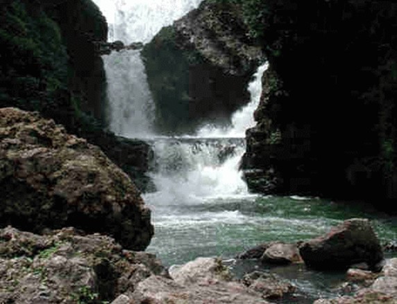 天下第一大神龕--香火巖神龕,位于景區(qū)中部半邊山下,寬約500多米,高約100多米的懸崖峭壁之上,龕內(nèi)隱約可見一座佛,高大雄偉,似人工實(shí)乃天成,迎面石峰矗立,若石人遙拜,渾然一體,妙不可言。香火巖大瀑布,位于神龕與石人之間,河水至此變窄、變陡,驟然間突現(xiàn)八級(jí)瀑布。總落差約250米,寬40米,樹林掩映、水霧縈繞、彩虹隱現(xiàn)、蔚為壯觀。沿觀瀑亭拾階而上,山路蜿蜒,奇樹夾道,藤繞枝連,綠葉蔽日,行約800米,忽見一景--滴水潭,滴水似鳴琴,深潭似臥龍,予人曲徑通幽之感。順小道前行,曲折似若無(wú)路,再行驟然現(xiàn)一大洞,謂之曰:"吐云洞",洞口云霧縈繞,洞內(nèi)怪石嶙峋,鐘乳倒掛,暗河密布,水流湍急,聲若雷鳴。洞內(nèi)絕壁棧道,游人至此無(wú)不感嘆大自然之鬼斧神工及建道者的艱辛。二洞天生橋,雄奇無(wú)比,人稱"黔中第一天生橋",橋?qū)捈s300米,高約50米,跨度約40米,橋頂中央巧開一"天窗",陽(yáng)光飛瀉、滴水飄雪,觸手可及,人間仙境莫過(guò)于此。香火巖之紅楓林、紅霞巖、水簾靈芝巖、金雞湖等等之勝景在此不一一敷述,游人至此自可感悟一番......