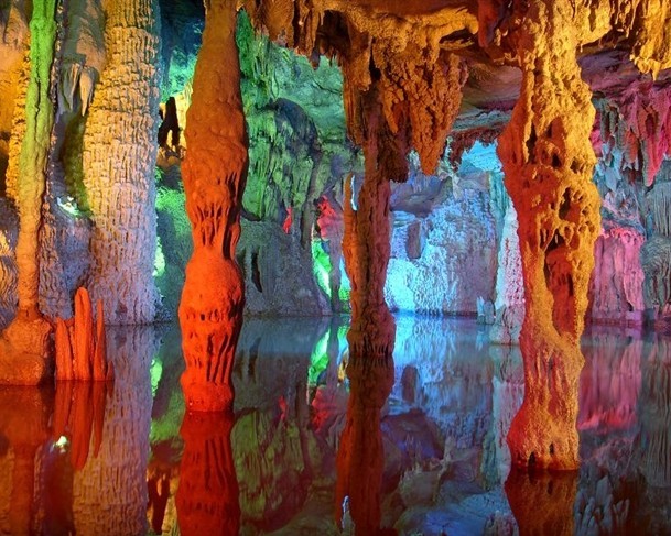 巖洞里有無底深潭,聊城旅游網版權所有聊城聊之旅國際旅行社有限公司,轉載必究!沒有人知道它究竟有多深。據說潭上有一條暗流,直通陽朔白鶴山下的深潭匯入漓江。相傳,古時有人探險,其暗流并不深,高處可以直立行走,低處僅有斗笠那么大,需匍匐而進。