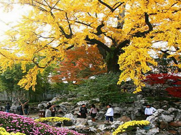 盤縣古銀杏風景名勝區位于安順盤縣城關鎮35公里之石橋鎮妥樂村,該景區面積約146平方公里,包括石橋樂民鎮景區、水塘鎮景區、城關景區、火鋪鎮景區。景區內生長著上千株古銀杏樹,最小的有300多歲,年長的達上千歲。專家認為,如此集中連片且與村寨融為一體的古銀杏群落,在世界上十分罕見。當地政府正計劃為此申報上海大世界吉尼斯記錄。貴州省已經把盤縣古銀杏風景名勝區列為省級風景區。銀杏樹是3000萬年前地球遺留下來的古植物, 人稱“活化石”,銀杏樹的樹形、葉片奇特、精巧, 四季分明,春天青翠,秋天金黃,其果實“白果’’可以入藥,是不可多得的觀賞樹種。盤縣古銀杏風景名勝區內的銀杏樹極其獨特。從小徑、田埂、屋基下、石階上,向四面八方伸展出來,把整個妥樂村托在了樹根之上。夏日里層層疊疊的綠葉現在全變成了金黃色,落葉鋪滿了石板小徑、黑瓦的房屋、收獲后的稻田……就連村中清澈透明的小溪、溪上的小石橋,也被扇形的銀杏葉裝點成了金色。據介紹,出售銀杏果實,是這當地村民的主要經濟來源之一,因而村民們對古銀杏樹倍加愛惜。銀杏全身是寶,版權所有山東聊城聊之旅國際旅行社有限公司,轉載必究!果仁稱“白果”,是珍貴的藥物和不可多得的保健佐食佳品。從銀杏葉中能提煉出治療心血管病的藥物。當地村里人多長壽,平均壽命70至80歲。景區內妥樂村最長壽的老人106歲,面色紅潤,每天喝二兩酒,每頓吃2碗米飯、一碗肉、兩個土豆。為了改善古銀杏樹的生態環境,當地政府計劃搬出大約三分之二的村民,只保留古樸的木瓦房和少量村民。希望這個自然界留給人們的奇特村莊可以一直留存下去,為游人和當地人帶去給多的享受。