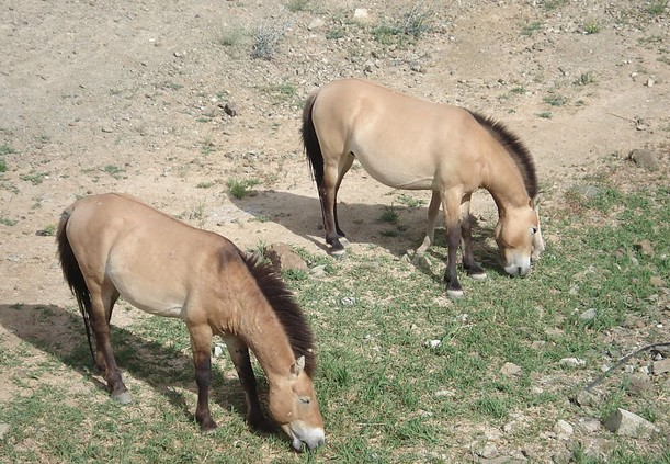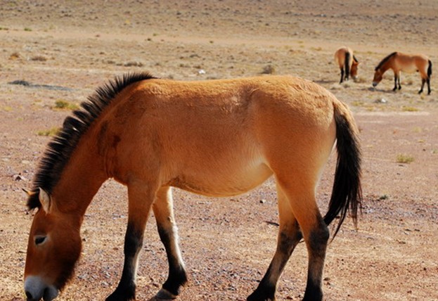吉木薩爾、奇臺以北的戈壁荒漠,本是蒙古系野馬的故鄉。1876年,沙俄探險家普爾熱瓦斯基“首先發現”了準噶爾野馬群,大肆捕殺制成標本,又將準噶爾野馬的信息帶到歐洲。于是歐洲人紛至沓來,獵殺之余,將大量野馬駒帶回國內放養。致使這一帶野馬瀕于絕跡。經國內外動物學家一再呼吁,近年才從英、德等國引回17匹當年被劫走的 “普氏野馬”的第八、九代后裔,在吉木薩爾縣西北30余公里興建的60余畝圈場中放養。