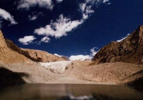 喀爾里克冰川位于新疆哈密境內,屬于橫臥東疆大地東天山山脈的一個山峰,海拔4888米。它形成的流域穿過遼闊的沃野,緩緩地流向了天山南北大片肥沃的土地,它是幾十萬哈密人民的生命源泉,也是幾十萬哈密人民賴以生存的資源。哈密喀爾里克冰川位于鹽池鄉政府南10公里處,海拔高度4888米,至今仍是一處尚無一人攀到頂峰的處女峰,終年積雪,分布著大小63條冰川。