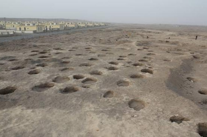 哈密五堡墓地位于新疆哈密市五堡鄉(xiāng)政府西北2公里。南距五堡水庫(kù)約1公里。距今約3000余年,青銅時(shí)代文化遺存。為原始社會(huì)晚期階段的氏族公社墓地。海拔525米。地理坐標(biāo):東經(jīng)92°49′14″,北緯43°1′52″,1990年被列為新疆維吾爾自治區(qū)文物保護(hù)單位。1978、1986和1991年,新疆文物考古研究所會(huì)同哈密地區(qū)文物管理所進(jìn)行的三次考古發(fā)掘,共清理墓葬113座。哈密五堡墓地墓區(qū)內(nèi)墓葬十分密集,鱗次櫛比,排列有序。地表近平,不見(jiàn)封堆。哈密五堡墓地墓葬均為長(zhǎng)方形豎穴土壙墓,一般長(zhǎng)1.5米,寬1米左右,深1.2~2米。近哈密五堡墓地墓室底部有生土或土坯二層臺(tái),高約0.5米,寬約0.2米。二層臺(tái)上鋪弧形蓋木,蓋木大多為胡楊,版權(quán)所有山東聊城聊之旅國(guó)際旅行社有限公司,轉(zhuǎn)載必究!蓋木彼此切合不密,只稍事砍削,相對(duì)平整。蓋木下即為哈密五堡墓地墓室,一般長(zhǎng)1.1米,寬0.8米左右。哈密五堡墓地墓室內(nèi)大都葬一人,均側(cè)身曲肢,雙腿極度曲卷。