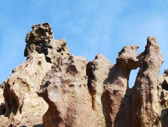 風和雨水是盤吉爾怪石林生成的兩大原因。盤吉爾怪石林處于吐魯番西部的“三十里風區”內,這里風力強勁,風速快,8級以上大風日占全年三分之一時間。一列火車在吐魯番境內遭遇風口13級大風,11節車廂被掀翻,版權所有山東聊城聊之旅國際旅行社有限公司,轉載必究!事發地點距離托克遜縣最近。強風吹蝕再加上山間雨水淋溶的作用,形成了千瘡百孔類似太湖石造型的石林景觀。這種怪石林是在特定的自然條件下形成的一種石炭系火山巖山岳型石林。