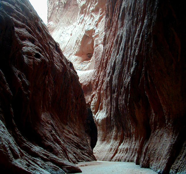 三是神水、神風之謎。盛夏,在谷外驕陽似火,汗流浹背。進入谷內特別是一線天、月牙谷、幽靈谷和冷風洞等景區,瞬間遍體生涼,暑汗全消。其因除谷內多泉溪,少光照,峽深谷幽外,還在于谷內有一股忽左忽右,忽前忽后,忽上忽下,類似天然空調的神風,萬古不歇。風向的瞬時變換與谷的峰回路轉,忽寬忽窄及內外溫差息息相關。至于冷風洞中風力的回旋至今仍是個謎。每逢枯雨季節,在谷內第一落差的下方,有一神奇的含羞水沿谷底時隱時現。用手在綿沙中輕輕堵攔,溪水則含羞而潛,提腳一踏,水則向后倒流。這一奇觀,中央電視臺和新疆電視臺先后做過專題報道。