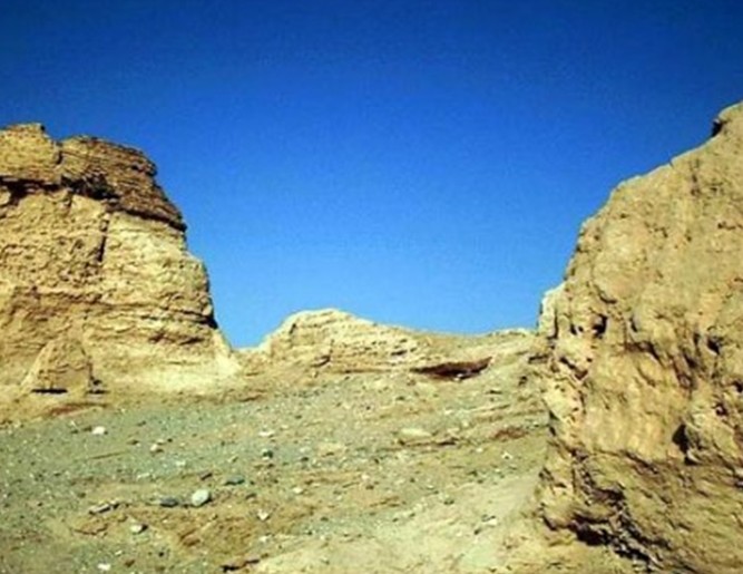 且末古城位于且末縣城西南約6公里的老車爾臣河岸臺地上,海撥款1,273米,遺址地表無植被,已沙化,呈雅丹地貌。在東西長約1公里,南北寬200米的范圍內(nèi),地表散布著大量陶片及鐵塊,煉鐵渣,曾采集到數(shù)件磨盤石殘塊,玻璃片,料珠。此外,在遺址中心區(qū)風(fēng)蝕地表,尚殘存數(shù)間房屋及其他建筑遺址,1985年9月挖掘出的古代毛織品,古尸,遍地尸骨墓室,還有陶片弓箭,證明這是漢軍屯田駐守城邑遺址,古有的城墻全部坍塌于洪水域,還有環(huán)城護(hù)河遺址。初考證為元宋時(shí)期遺址,這里被稱為“車爾臣闊納協(xié)海爾”維語意為:且末古城。