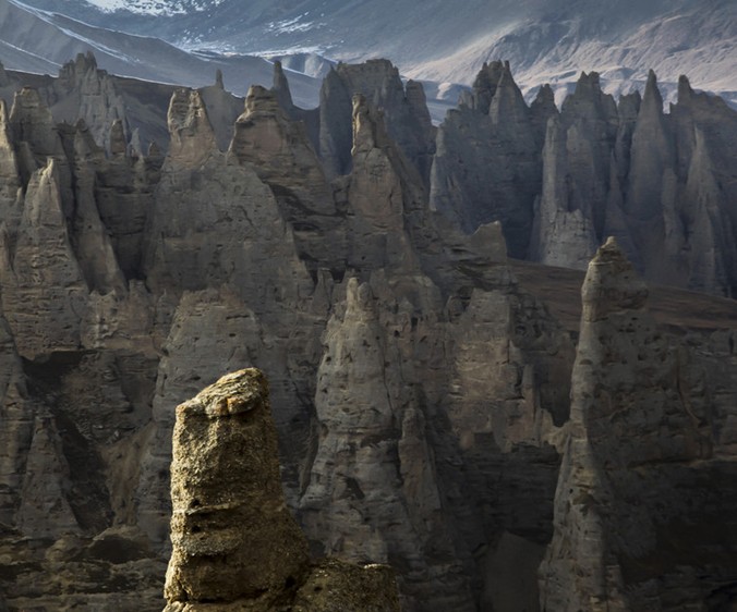 天山石林又稱奎克烏蘇石林,因位于天山山脈西段、那拉提山北麓的奎克烏蘇達坂之下而得名,長9000米、寬約5000米,相對高度30米,大自然的鬼斧神工,把石林雕刻得奇形怪態,千姿百態。從巴音布魯克草原向西南行走100公里,登上科克烏蘇達坂頂端,放眼望去,在雪峰環抱中,好象有一片原始森林散落在一條深谷兩面的山坡上,走近一看,原來不是松柏,而是一片亭亭玉立的“石林”。經過大自然幾百萬年的洗禮,這沙巖石林被雕塑的千姿百態、光怪陸離。有的宛如座座古堡,有的仿佛行人走獸,栩栩如生;有的象刀槍劍戟,直插藍天,其間還布滿了大窟小洞,通幽曲徑。石林地處天山深處,交通不便,反倒成了天然野生動植物的保護圈。