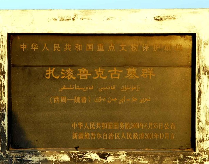 扎滾魯克古墓群發現于1930年,墓葬位于新疆維吾爾自治區且末縣托格拉克勒克鄉扎滾魯克村西2公里處綠洲邊緣地帶的臺地上。距離且末縣城西5公里處,東南,西北走向均有遺物分布。扎滾魯克古墓群由1號、2號、3號、4號、5號墓地組成,可區分為東西兩區域,分布總面積約2.5平方公里。