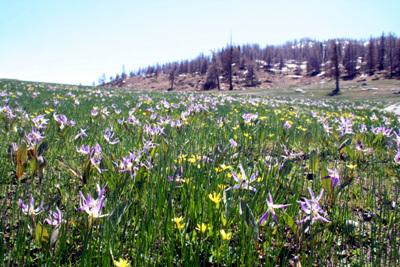從大小東溝交匯處步入公園,寬闊的河谷由此向兩側分延,小東溝很長,溝的源頭地烏爾麥蓋提大坂,也是克蘭河的源頭。溝處在山谷之中,兩側山勢陡峭,溝谷生長著茂密和樺樹和楊樹,偶有云杉生長,越往溝上游走,云杉、紅松等針葉樹種增多,闊葉樹種減少,現在游客最多的溝段主要生長的樹種是闊葉樹種。