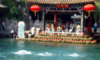 Baotu spring Centering around springs, Baotu Spring Park is a natural rock and spring garden unique in ethnic style. Baotu Spring, the best one among the famous 72 springs in Jinan, is hailed as "the first spring under the heaven", the spring water spurts out in three prongs, with water droplets falling around, just like three piles of snow, which is very spectacular. The spring water is very sweet, optimum for making tea, which is limpid in color, rich in aroma, good in taste. Sitting under the "Watching Crane Pavilion" in the east side of the spring with a cup of tea in hand, one's mind will fly faraway and hates to leave.