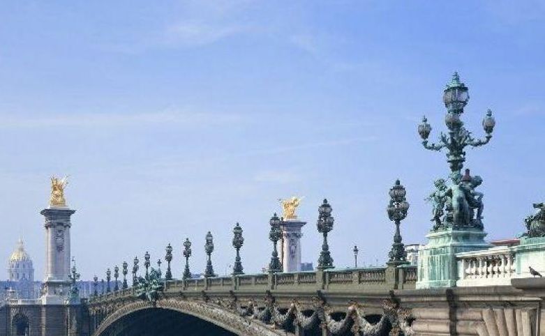 塞納河上架著的橋,據(jù)說共有36座,每座橋的造型都有特點(diǎn),而其中最壯觀最金碧輝煌的是亞歷山大三世橋了。這座橋以其獨(dú)一無二的鋼結(jié)構(gòu)橋拱,將香榭麗舍大街和榮軍院廣場連接起來。建此橋?yàn)閼c祝俄國與法國的結(jié)盟,當(dāng)時(shí)是1900年前后,俄法兩國在百年前還是世仇,拿破侖曾揮師攻打俄國,使莫斯科烈火屠城。100年后兩國一笑泯恩仇,而且意味深長地將橋通向拿破侖墓。大橋兩端四只橋頭柱上鍍金的雕像,由長著翅膀的小愛神托著,它的華麗造型和色彩在巴黎特別顯眼。