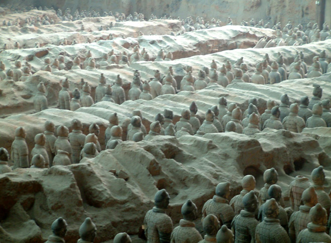 模擬的秦陵地宮,雖然只能讓人對秦始皇陵有個粗略的了解,但也更令人對真的秦始皇陵產(chǎn)生無盡的想象:秦始皇陵,這座中國歷史上的第一個皇帝陵園,至今尚未開發(fā),里面不知還埋藏著多少珍寶,也不知還有多少玄機……