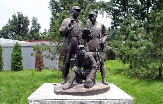 室外雕塑區位于展覽館的后廣場,設有六組雕塑:聶榮臻和美穗子,鄧拓、沙飛與新聞戰士,李勇和爆破組,戎冠秀與受傷戰士,國際友人白求恩,狼牙山五壯士,這些雕塑作品從不同側面反映了晉察冀根據地的特點,加深了觀眾印象。