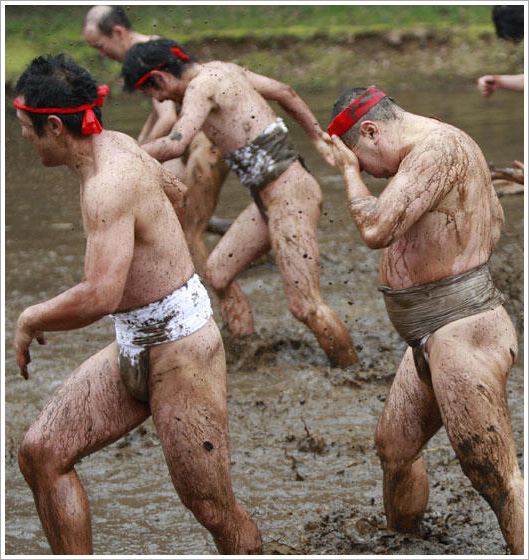 每年的2月25日,在日本千葉縣四街道市郊外的稻田里,居民 們參加一年一度的“泥漿節”。