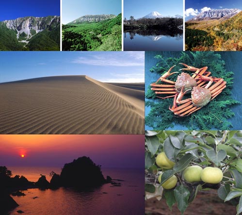 鳥取縣位于日本列島本島的西端,中國地方的東北部,是全日本人口最少的縣,因盛產“二十世紀梨”和“富有柿”而聞名于日本。土地面積占日本總面積不足1%,近90%土地為山地,由山地流向日本海的日野川、天神川、千代川等,分別在下游形成米子、倉吉、鳥取三平原,擁有日本最大的大自然人工天成的沙丘鳥取沙丘。氣候相對溫暖,從春到秋多晴天,冬天有降雪,四季變化鮮明。主要產業有電機、食品、紙漿、造紙、金屬制品等。海岸線長約一百三十公里,海岸平緩,有很多天然良港,漁業發達。