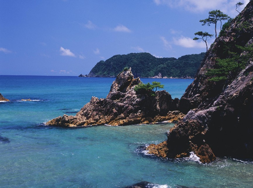 浦富海岸位于鳥取縣巖美郡巖美町,是由海水侵蝕和風蝕而形成的斷崖、奇巖、洞穴等奇景,入選“日本海濱百選”、“日本白砂青松百選”、“日本之渚百選”、“平成日本百佳觀光地”。附近海面上散落著166個大小島嶼。