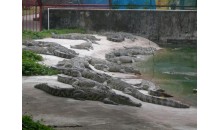 島那金碧輝煌,巍峨壯麗的泰式門樓,門前寬廣的停車場可一次性停放上百輛大巴,進入大門后,有一個十分醒目、高達4米的大型鱷魚雕像——“鱷魚一家”吸收不少游客紛紛在此攝影留念,離雕像百米處,十多個鱷魚池座落在鮮花叢中、綠茵地上、池中養有我們祖先稱為“噴火龍”、“鮫龍”的楊子鱷、泰國灣鱷、馬來鱷、雜交鱷等四個品種.