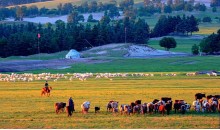 輝騰錫勒草原距呼和浩特東北150公里。蒙語意為寒冷的高原。這里海拔1800多米,在東約18公里的地方,有九十九個天然湖泊,鑲嵌在綠草如蔭的草原上。這里是避暑的好地方,游人在這里可以體驗“早穿皮襖,午穿紗,晚上圍著篝火吃西瓜”。
