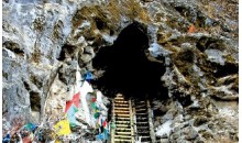 金嘎溶洞,是一個自然形成的溶洞,位于西藏日喀則江孜縣金嘎鄉。此溶洞以其神奇傳說與充滿佛教氣息著稱。如同一堆鋒利的兵器,整個形態象度母靜坐。洞口寬約8米,高近2米,洞深40余米,自上而下有自然形成的蓮花生大師、南木朗?多吉堆窘大譯師等六個修行洞,及自然形成的形態逼真的米拉日巴、十六羅漢、大象、蝎子、天龍、地蛇、月亮、太陽等80余種畫面。