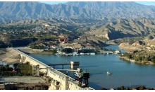 在甘肅永靖縣境內。黃河兩岸崇山峻嶺, 形成峽谷。1974年建成具有發電、防洪、灌溉、養殖、航運等功能的綜合性水利樞紐工程。一條長840米、高147米的巨大攔河壩把黃河攔腰斬斷, 形成了劉家峽水庫(庫容57億立方米,水域面積130平方公里),大壩下安裝了五臺國產大型水輪發電機組,成了總裝機容量122.5萬千瓦年發電量57億度的黃河上游第一座水力發電站。