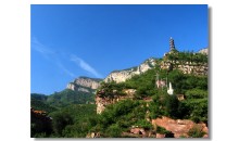 抱犢寨,舊名抱犢山,古名萆山,位于河北省石家莊鹿泉市西郊,距省會石家莊16公里,距首都北京288公里,是一外集歷史人文和自然風光為一體的名山古寨。系國家四A級旅游區、河北省旅游先進單位、石家莊十佳旅游景區。它東臨華北平原,西接太行群峰,一峰突起,崢嶸雄秀,四周皆是懸崖絕壁,遠望猶如巨佛仰臥,眉目畢肖,其山頂平曠坦夷,有良田沃土660畝,土層深達66米,異境別開,草木繁茂,恍如世外桃源。有“天下奇寨”、“抱犢福地”之譽。