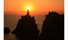成山頭自古被認為是日神所居之地。據《史記》載:姜太公助周武王商定天下之后 ,曾在此拜日神迎日出,修日主祠;公元前219年、210年,秦始皇曾兩次駕臨此地, 禮祠名山,求尋長生不老之藥,留下了“秦橋遺跡”、“秦代立石”、“射鮫臺”、“始皇廟”及李斯手書“天盡頭、秦東門”等古跡;公元前94年,漢武帝劉徹東巡海上,拜成山日主祠、觀日出,建成山觀,且作赤雁歌。