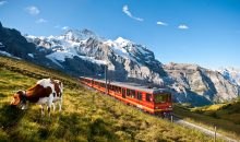 少女峰(Jungfrau)是瑞士的著名山峰,海拔4,158米(13,642英尺)。