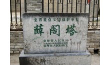 薛閣塔在安徽亳州老城東南,是一座磚塔。直椎式八角開,共七層,高34.15米,周圓23.36米。塔座由八塊青石奠基。塔一二層為仿木結(jié)構(gòu),每角砌磚為方柱,高3.5米。柱上仿高50公分。仿上為塔檐、上并飾以斗拱、昆蟲、鳥卉花紋,登塔門面向東北,有螺旋式臺階,塔室為一個面南的小龕,可能是供俸神象用的,現(xiàn)空無一物。
