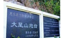 大星山炮臺位于港口鎮(zhèn)最南端的大星山西南面,是平海諸炮臺中保存得相當(dāng)完好的炮臺。東、西、南三面臨海,地勢險(xiǎn)要,易守難攻,是歷代兵家必爭之地。鴉片戰(zhàn)爭前夕,帝國主義列強(qiáng)不斷派兵侵略中國,為抵御外來侵略,清康熙五十六年(1718年),廣東、廣西地方軍務(wù)兼理糧餉兵部右侍郎兼都察院右副都等捐銀在此建造炮臺,筑成軍事要塞。炮臺用麻石砌筑,周長295米,平均高3.5米,寬2.55米。