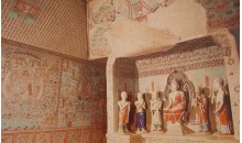 “炳靈”,是藏語“十萬佛”的音譯,意譯相當于漢語的“千佛山”、“萬佛洞”。炳靈寺石窟的正式營建始于西秦建弘元年(420年),后歷經北魏、北周、隋、唐,不斷進行開鑿修造,元明時期仍有修妝繪飾?,F存窟龕183個,共計石雕造像694身,泥塑82身,壁畫約900平方米,分布在大寺溝西岸長約200米,高60米的崖面上。石窟以位于懸崖高處的唐代“自然大佛”(169窟)以及崖面中段的眾多中小型窟龕構成其主體。