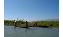茵萊湖位于緬甸北部撣邦高原的良瑞盆地上,為緬甸第二大湖,緬甸著名的游覽避暑勝地。湖面海拔970多米,南北長14.5公里,東西寬6.44公里,三面環(huán)山,來自東、北、西三面的溪流注入湖中,向南匯入薩爾溫江。湖水清澈,陽光直射湖底。湖中生活著20多種魚,有豐富的水產(chǎn)資源。