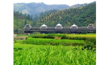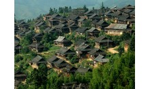車江侗寨 也稱“千戶侗寨”,是全國侗族人口居住最密集的地方。從榕江縣城過了榕江大橋往北就是車江萬畝大壩。都柳江支流寨蒿河流經筆架山下,連接沿河5個村的侗寨。因河中有巨石三塊,“三寶”因此得名。“三寶”侗寨綿延約有15千米,除非有很充裕的時間,否則很難一一走到。離榕江縣城5千米左右可以看到一座木結構寨門,上面寫著“天下第一侗寨”,這是較有規模的古榕群景區。