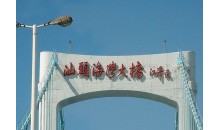 位于汕頭港東部出入口媽嶼島海域處,為跨海公路橋。橋面跨越礐石海, 全長2500米。由3部分組成:南面是跨黃沙灣南航道的預應力鋼筋混凝土加大橋勁梁懸索橋;北面是跨北航道的預應力鋼筋混凝土梁式橋;中部為橫跨媽嶼島上的預應力高架旱橋。橋主孔通航凈跨度452米,通航凈高46米,可以通過5萬噸級船舶。這座大橋是深汕兩地一級汽車專用公路的配套設施,是連結深圳、珠海、汕頭、廈門等4個經濟特區的陸地交通紐帶。