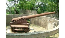 此炮臺控制旱峽陸路及羚山峽水道交通的要沖,形勢險要,這里是歷來兵家必爭之地。炮臺主體建筑設在紅崗制高點,以主體暗堡(母堡)為中心,在平面為長方形的陣地上按照東南、東北、西南、西北四個方位分設四座較小的暗堡(子堡),炮臺暗堡結構與當地其他炮臺一樣。