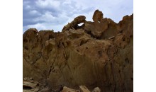 阿克蘇拜城縣鐵熱克鎮(zhèn)境內(nèi),距縣城38公里,交通便利。地理坐標(biāo)81°32′27″E,41°58′00″N,海拔1670米。石腳印位于卡普斯浪河左岸一級(jí)地上,在它旁邊是一深切小溝谷,源頭為一苦泉,沿第三紀(jì)砂巖裂縫向外滴流。據(jù)說此苦泉水可治眼病,每年都有許多本地群眾前來洗眼治病,石腳印在一橢圓形的深褐色火巖礫石上,為一深陷的左腳印,印紋深約3厘米,長(zhǎng)約28厘米,寬約9.5厘米。