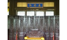 在麗正門北,是避暑山莊正殿。此殿規模宏大,殿前有外、內午門,朝房、樂亭,后有四知書屋、寢宮等 建筑。內午門為清帝每年到承德木蘭圍場進行秋獵時舉行小型閱射之所,門上懸有康熙我御書“避暑山莊”四字匾額,東西兩壁是乾隆御制《閱射六韻》詩刻石。殿建于清康熙四十九年(1710),乾隆十九(1754)全部用楠木改修,故又稱楠木殿。面闊7間,單檐卷棚歇山頂。