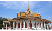 金邊皇宮(Royal Palace),也稱四臂灣大皇宮,建造于1866-1870年 。坐落于金邊東面,面對湄公河、洞里薩河、巴沙河交匯而形成的四臂灣,屬于典型的高棉式建筑。王宮為長方形,長435米,寬402米,外有城墻,里面共有20余座建筑物。建筑極富高棉傳統(tǒng)風格和宗教色彩,多為黃、白兩色,黃色代表佛教,白色代表婆羅門教,所以看上去金燦燦的。