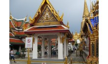 國家皇宮坐落在吉隆坡的一座小山丘上,雖沒有其他大國的皇宮建筑的宏大氣派,但卻有著皇宮一如既往的輝煌與莊嚴(yán)。在平常的時(shí)期,皇宮并不對外開放,所有的游客只能在皇宮門口欣賞整個(gè)皇宮的華麗。簡單的皇宮門口是由一扇并不是很寬敞的鐵門與旁邊的小崗?fù)づc小門洞組成。僅僅就這一小片風(fēng)景,就讓游客迷戀不已。鐵門是用黑色作底色,襯以金黃色作為裝飾,典雅大方,從嚴(yán)肅中透出一種高貴。在鐵門的側(cè)邊的崗樓和崗樓旁的門洞中,各有一名哨兵站崗,在崗樓中的哨兵身穿白色上衣配有綠色前裙的制服,手持長槍;在門洞中的哨兵,則穿一件紅色上衣,黑色長褲,胯下騎一匹黑色高馬,威風(fēng)凜凜,常常吸引無數(shù)鏡頭。