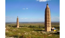 拜寺口雙塔是一對(duì)磚砌佛塔山口東側(cè)的塔稱為東塔是一座正八角形建筑,高13層,每層塔檐下,各面都有各種獸頭的浮雕,西塔也是13層高,較東塔粗壯外形呈拋物線狀,曾發(fā)現(xiàn)梵文、西夏文題記和元代銀幣等。在銀川市西北約50公里處的賀蘭山東麓的拜寺口內(nèi),坐落著一對(duì)古塔,它們就像兩個(gè)孿生兄弟守衛(wèi)在山口兩旁,顯得格外挺拔。拜寺口雙塔坐落在賀蘭縣西部的拜寺口。
