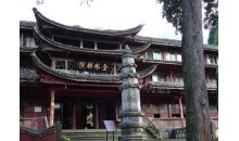 峨眉山圣水禪院原名神水庵、神水閣,有五重殿宇,全寺的殿堂和附屬房屋全系木制結構。禪院原為明代安慶巡撫吳用先的舊居,因周圍“修竹萬竿”,有“水竹色相繞,碧花動軒楹”(唐,孟郊 《旅次洛城東水亭》)的意境,取名“水竹居”。明萬歷末年(約公元1619年),因水竹居前有“玉液”神水,遂改宅為寺,名“神水庵”。寺院前有一塔,傳為隋代智者大師衣缽塔。