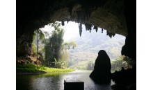 陽春玉溪三洞全長3公里,均可坐船瀏覽。第二洞長330米,水深2-5米,水面寬20-30米,河水清澈如玉,水中多生長鯉魚。洞中景物豐富,尤以“三變石”為趣,詩人張永枚曰:“遠似漁翁釣清流, 近如獅子滾繡球,忽變犀牛望明月,一石三景迷輕舟”。第一洞頂?shù)摹盎使凇笔崴苹使冢稳嗽诖想S即可拍攝一幅頭戴皇冠的照片。