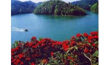 杜鵑湖風(fēng)景區(qū)位于貴州省長(zhǎng)順縣境內(nèi),屬古夜郎國(guó)政治中心,與貴陽(yáng)、安順成金三角之勢(shì),交通便利,東距貴陽(yáng)102公里,西達(dá)安順85公里,與黃果樹、龍宮、紅楓湖等著名景區(qū)共同構(gòu)成貴州西線旅游環(huán)線。杜鵑湖風(fēng)景區(qū)以長(zhǎng)達(dá)7公里的人工湖為主體,四周群山環(huán)抱,湖面煙波浩淼,湖水碧綠如鏡,山頂煙霧繚繞,山下微波拂岸。杜鵑湖的森林覆蓋率近90%,生長(zhǎng)著原生態(tài)的常綠杜鵑花。